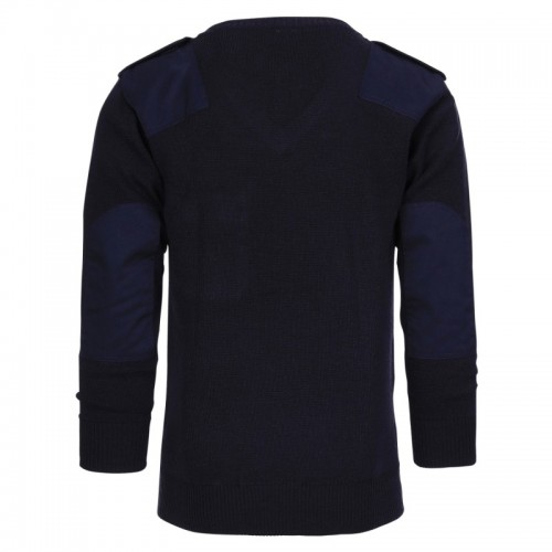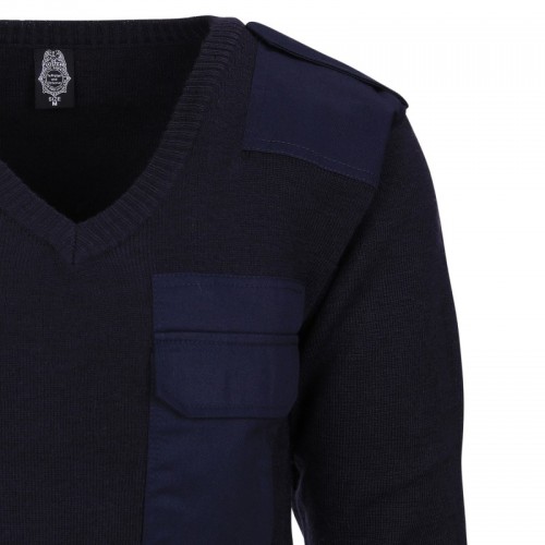 Пуловер с V-образным вырезом из 50% шерсти и 50% акрила.